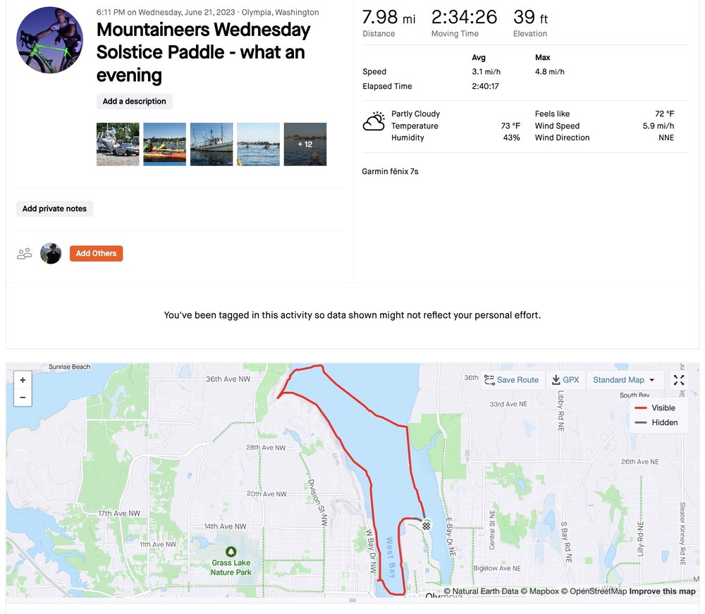 Wednesday evening summer solstice paddle on Budd Inlet, Olympia. Couldn't have asked for better conditions.
