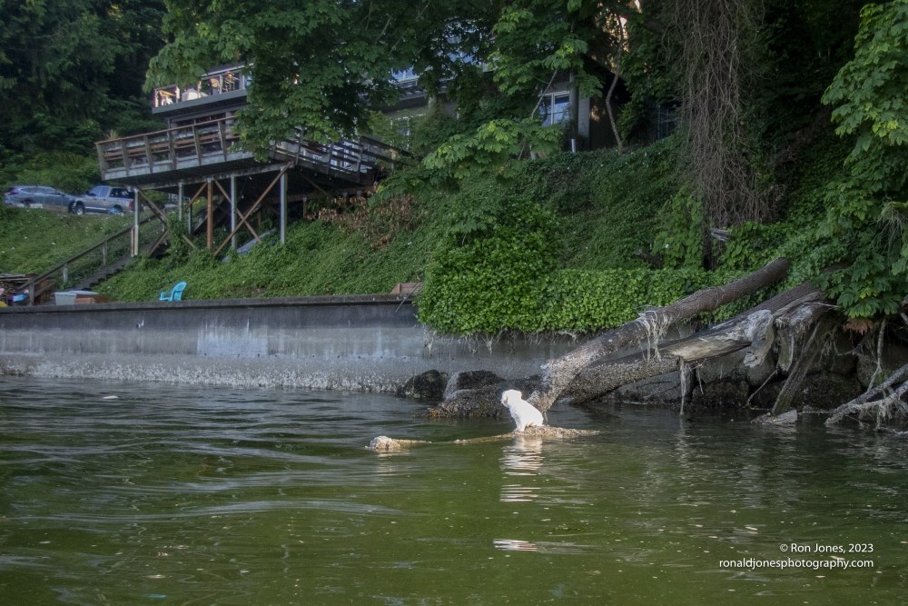 We thought we might need to rescue Gracie, but after alerting the owners on shore, we learned she's a full on water dog.