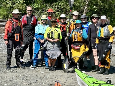 After lunch, we paddled to Clarke’s Point, where we explored the unique geological formations, including the striking concretions. In the sheltered inlet on the south side of the point, we were pleased to find a healthy number of Pisaster ochraceus starfish, a positive sign given their population decline in recent years. We also spotted a Leather Star resting among the rocks.
