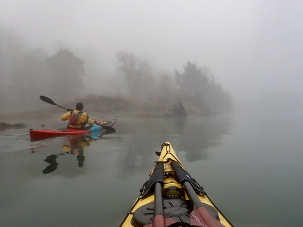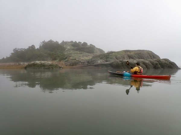 Undeterred by fog, we followed a strategy of shoreline hugging as we made our way from La Conner to the McGlinn Island end of the dike separating the Swinomish Channel from the North Fork of the Skagit River.