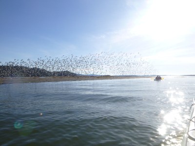 A glorious sunny and calm day around this pristine island in Willapa Bay. Sunshine, light following winds, large flocks of shore birds and a surprise elk siting.