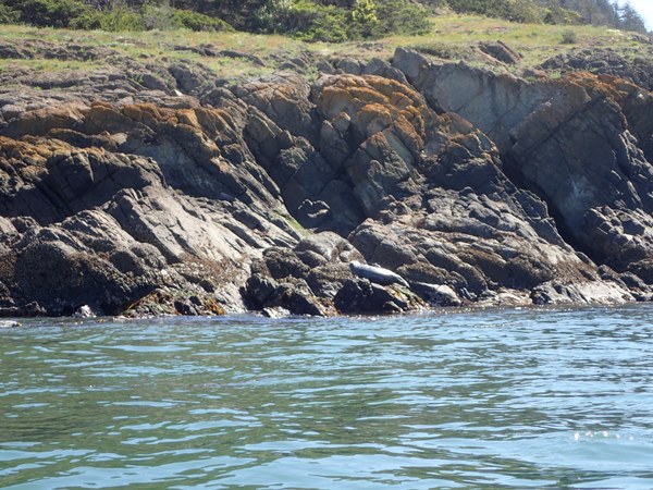Nobody needed to stop so we proceeded on in the quiet water and bright skies down to Allan Island. I got a picture of a seal snoozing on a rock that happily didn’t move as we went on by as quietly as we could.