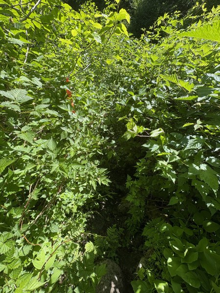 We crossed the river before 10a and headed up the trail. The trail is shaded all the way to the lake. There are berries along the trail in places. Despite there being rain earlier in the week, some of the creek beds were dry. There are some smaller streams that cross the trail, which are suitable for refilling water bottles. And we saw lots of frogs.