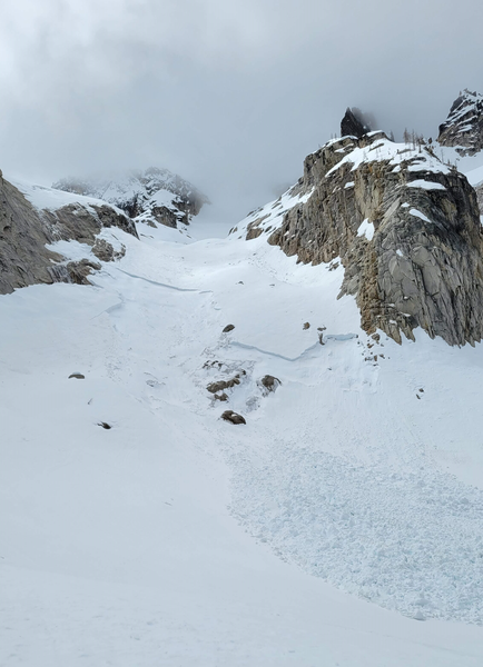 Large slab avalanche (from last weekend) on the left gully leading to the upper glacier basin