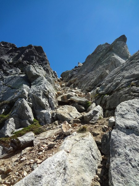 Second wide gully. traverse to the left side at the base and then ascend and angle right to the top