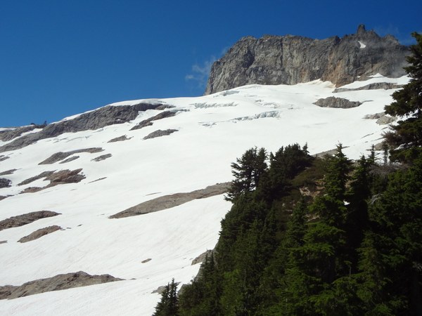 - As of 7/21/18 the glacier is in great shape. No problem getting on or off. There is a steep traverse above some bad run-out. With students, setting pickets may be advisable in this section
