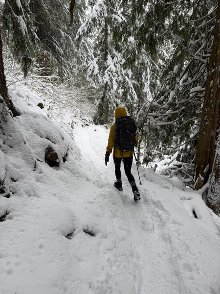 This was Luke Lampe and I's first time up Mailbox Peak! The hike was steep and rooty with snow starting at around 1500ft. We put our micro spikes on half way up and they worked great. The trail was pretty packed down, but the spikes helped on the steeper sections.