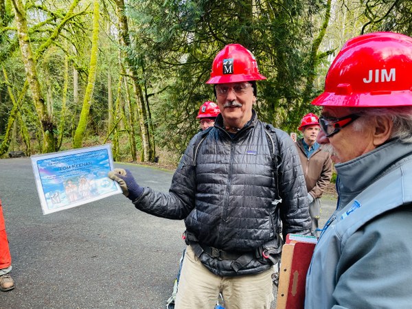 Tom Keenan is the first recipient of our brand new recognition: Trail Scout, but his certificate includes the extra special designation of Extraordinaire, the French version for " the first person on scene with Everything, Everywhere all at once."