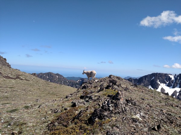 After setting up camp we climbed the ridge and up to Buckhorn Peak (some snowfields that can be easily skirted but this is a very steep and slippery scree climb in places). There were a dozen or so goats along the trail to the peak, and views stretch from the Hood Canal to Mt Baker and the Strait of Juan de Fuca to the snowy Olympic range.