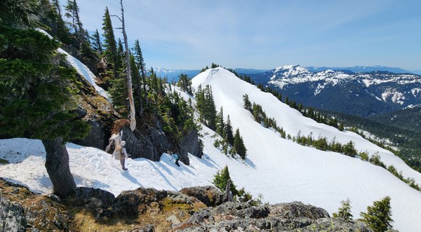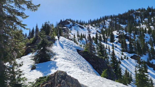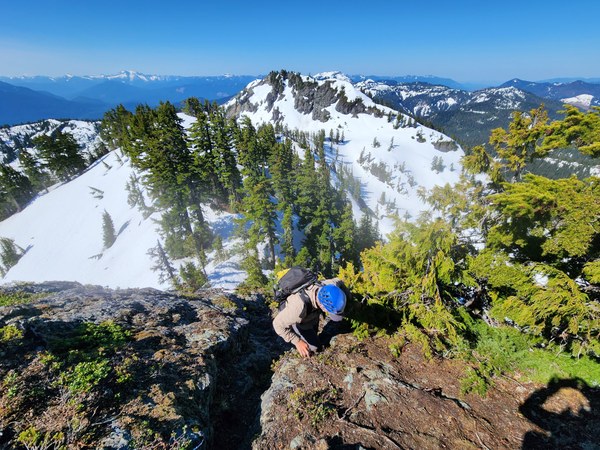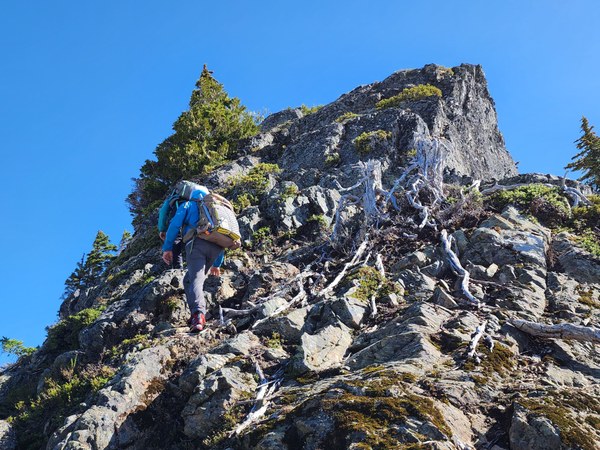We need to go over 2 bumps, do a little bushwacking and a few class 3 moves before arriving at the summit.