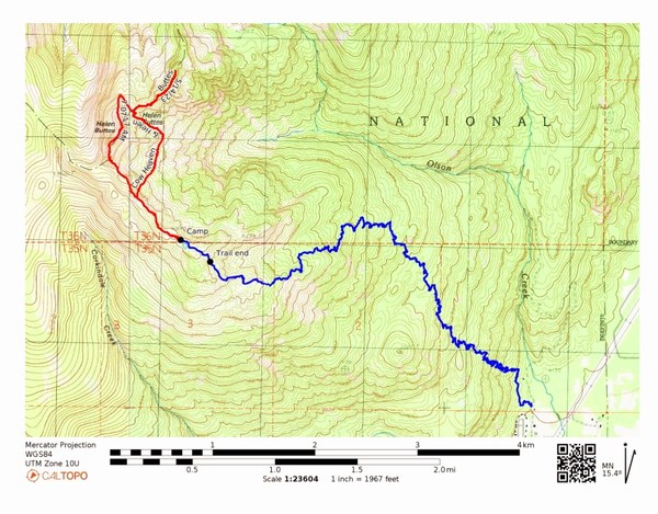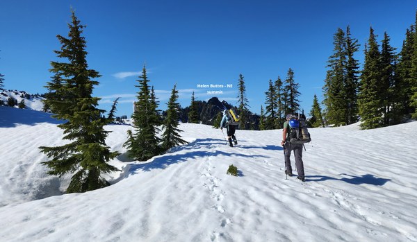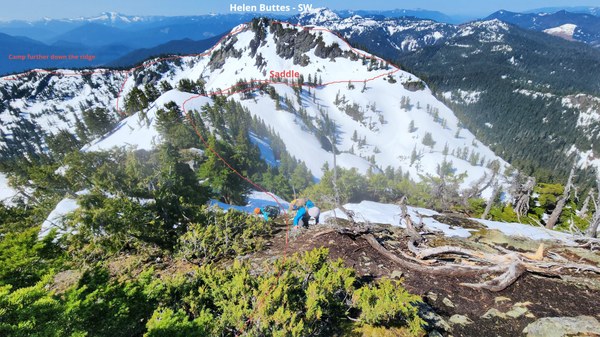 Our stats for this scramble was 14.25 miles/5800' gain. The blue track is from the TH to camp at 4800'. The red track is our route to Helen Buttes - NE Summit. We tagged Cow Heaven along the way. My GPX track is on Peakbaggers.