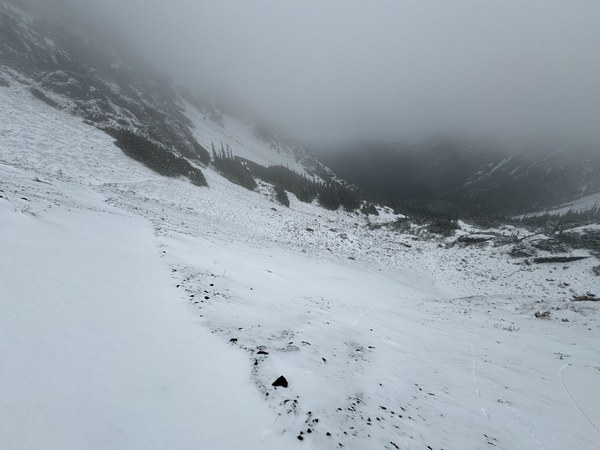 Just north of Victor Pass (the junction of Switchback, Lake Angeles, and Heather Park trails) we entered the area where future snow accumulations/conditions will make avalanche concerns more dire.