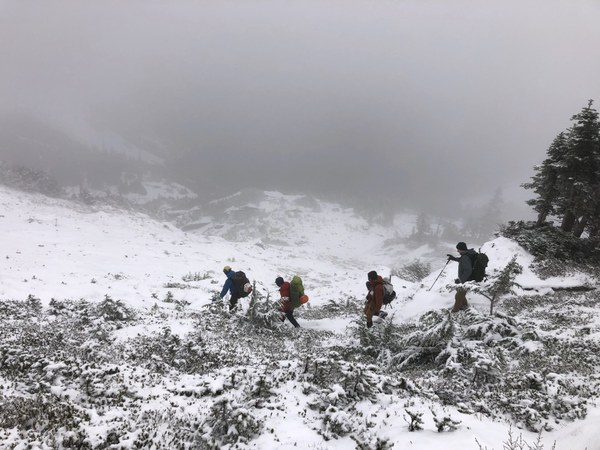 A stunning shoulder season traverse with rapidly accumulating snows soon to conceal all signs of the trail (at least up high ;). With the Hurricane Ridge Road closed (for visitor center replacement work) we had the place all to ourselves.