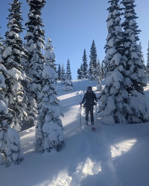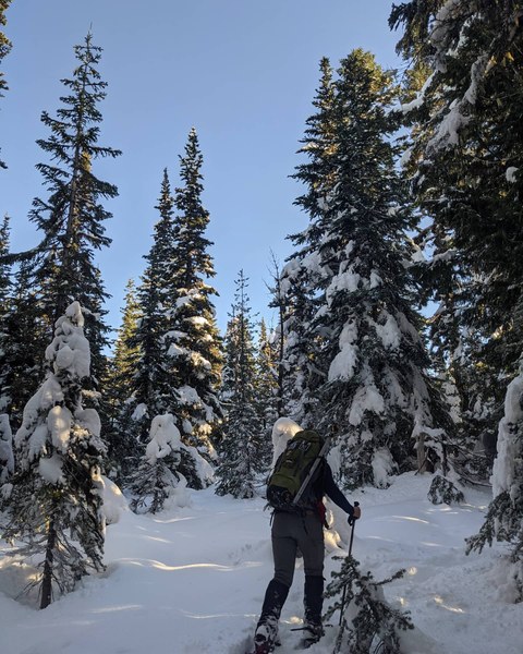 Rick, coming out of the trees and heading into the plateau. So much fresh snow to break trail