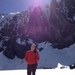 Stay generally on E bearing, picking a path through second growth, tedious at times, but never impassable. A rising traverse between the first and second branches of Wolfe Creek works well to about 4300'. Then after crossing the 2nd branch of Wolfe Creek, continued E to spur road end at 4400'. From there the route ascends beautiful open forest to the ridge S of the false summit. On a previous ascent I had traversed below false summit, but we went directly over it and down to the saddle, using ice axes on some wind-scoured icy terrain, never with a lot of exposure.