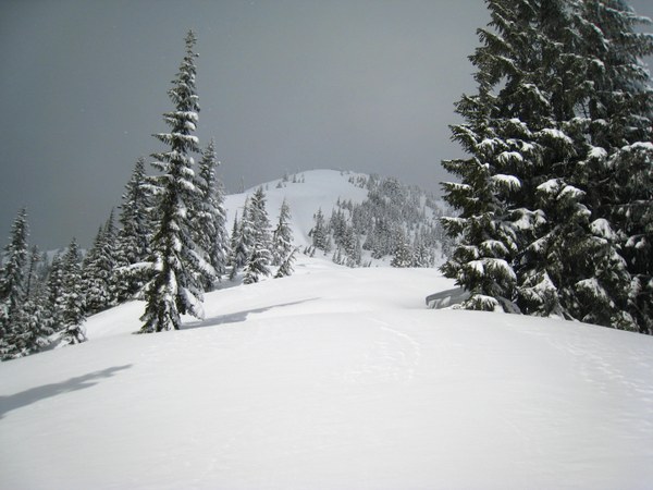 Heavy rain soon turned to snow en-route to Stevens Pass. We parked at the large plowed (and paved) pullout 100 yards east of Smithbrook Road (FS Road 6700) accessible from highway 2 westbound. By this time, the rate of snowfall had decreased substantially and the weather appeared to be more in-line with the forecast for the day.