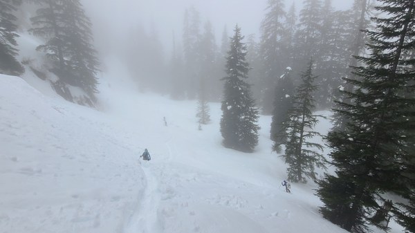 We continue to follow their tracks since their route is still similar to the route we had planned for ourselves. Into the clouds we go.