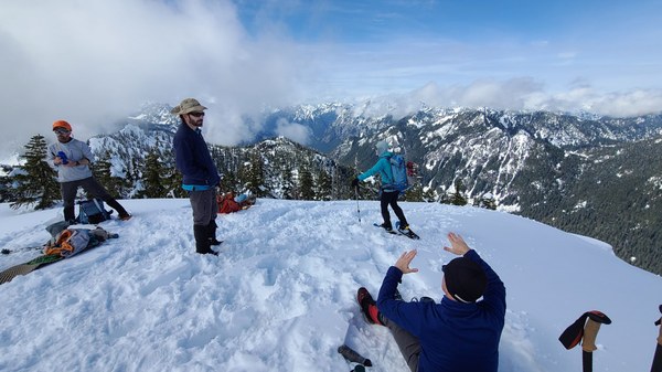The other group is heading down soon after the first members of our party arrive at the summit. We thank them profusely for their trail breaking. I finally reach the summit around 1pm. Thanks for the photo, Harumi.