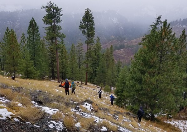 We met at Tibbets at 7am, made a stop at Pioneer Coffee in Cle Elum before arriving at the Shaser Creek TH a little after 9am. We started up FS #7322 at about 9:30am.