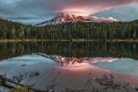 The time investment is a pain to some — this era of mobile-phone photography is so much about instant gratification. But it’s what makes outdoor photography more gratifying to me. It’s the preparation, the getting to, and the waiting that all adds 1,000 more words to the story behind each picture. I recently had two images chosen to be posted in the future at Metro bus stops. They may be pretty pictures to others, but both have a lot of personal meaning for what went into getting them. One, of a long-eared owl guarding its prey, was captured on an outing with Bannick. We’d been to the site twice before, observing the patterns of the owls, who usually are not found west of the Cascades. The third time, we knew the owl’s patterns so well, we could race to its next perch and set up, while other envious and clueless photographers muttered about Bannick “chasing” his subject (they didn’t care about me; I was just his “sherpa”). The other image, a fiery lenticular cloud around the summit of Mount Rainier, meant getting up early enough to beat sunrise, overcoming my fear of driving in altitude and, even, of the foxes that raced past my feet in the darkness.