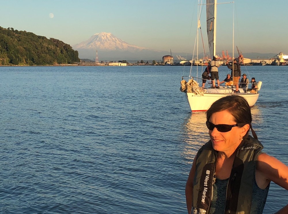 At the open house meeting, Terri Benz and signing up for the Basic Crew Sailing Course. Sailing was just a dream for me at that time. I’ve been sailing ever since. I’ve meet a whole community of people in Tacoma!