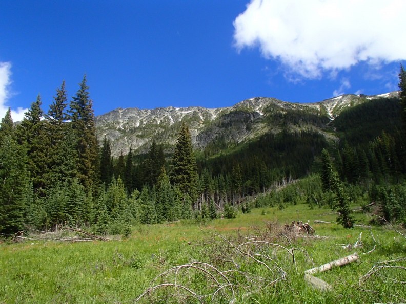 We were on the trail by 7am. We made good time on the logged out trail, completing five miles within the first two hours. We passed one party of two carrying an uncomfortable looking raft, headed to the Hidden Lakes. Three hikers and two forest service employees were the only humans we saw in five days.