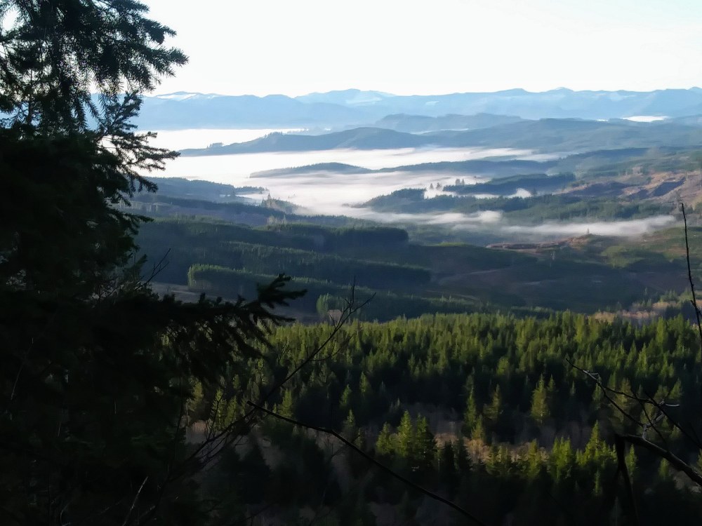 But my attention didn’t stray long. I did a double-take and realized that I caught a glimpse of Washington’s Willapa Bay… from Oregon! Another turn of my outstretched arms brought me to Mt. Jefferson to the southeast, and Hood, and Adams, and St. Helens, then Rainier. Unprecedented… at least in my book.