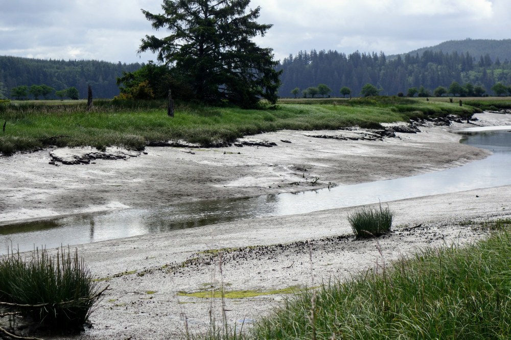 Long Island is noted for its considerable herd of Roosevelt Elk which are pursued each September by bow hunters. The current record Roosevelt Elk was harvested from Long Island. We saw several small bands of elk on the island perimeter, in the voluminous meadows that are divided by the elongated fingers of the bay, filling and emptying.