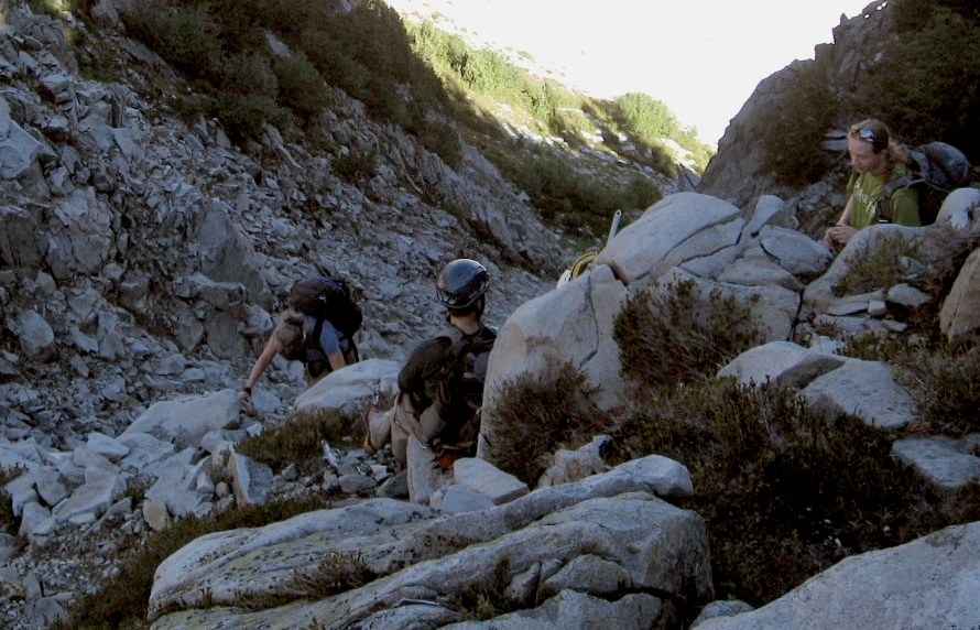 In the face of extraordinary pain, the injured scrambler was still able to hike out. Other party members carried her pack, and I guided her down the boulders and then out the trail. In total she hiked about 2 hours holding her hand above her head to reduce the pain.