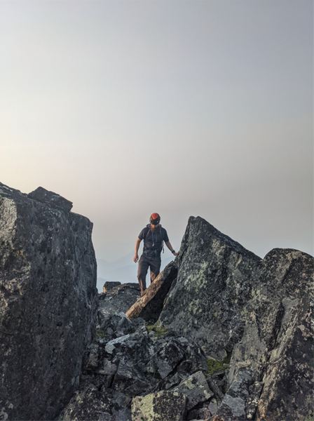 Jon Larson navigating to the summit of Sluiskin the Squaw, August 2021.