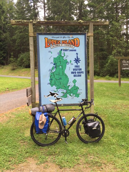 A Lopez Island map greets cyclists at Odlin Park, shortly after leaving the ferry.