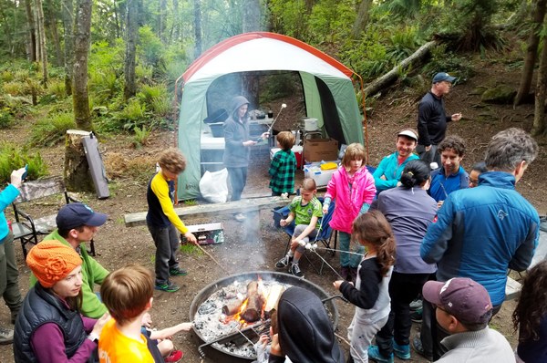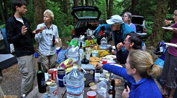 Mountaineers Pioneers camping at Larrabee State Park. Photo by Carl Marrs.