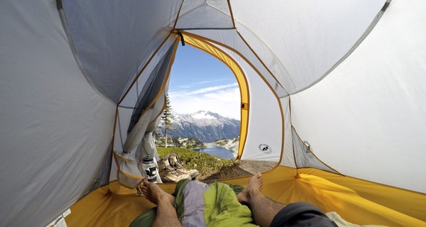 View from a tent at Hidden Lake. Photo by Rafael Godoi.