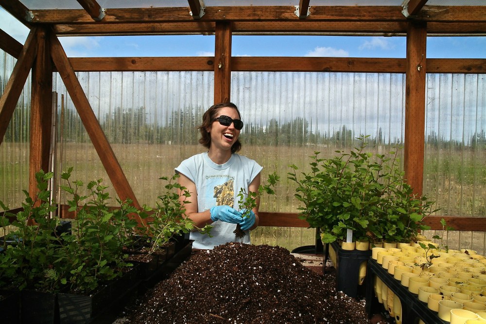 “June 2014 marked our first stewardship trip in support of Elwha River restoration. We volunteered at the nursery on Friday, followed by a presentation on the history of the Elwha River by Olympic National Park Ranger Dean Butterworth. Afterwards, we enjoyed pizza at the evolving mouth of the river where it empties into the Strait of Juan de Fuca, and camped at the Altair Campground in the Elwha Valley of the Park. Our adventure on Saturday included a hike in the Geyser Valley, then onto a fascinating walk amongst old growth stumps that were revealed in what once was Lake Aldwell before the Elwha dam was removed. There were four of us on that first trip to the Elwha and the roster has grown with each trip since. As the restoration project will be completed at the end of this winter 2017, are leading our ninth and final trip to plant trees along the river this January.”