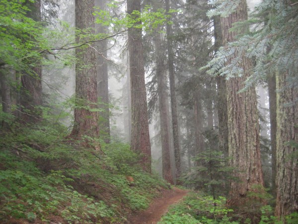 We were hoping for views of Mt. St. Helens like we had when we hiked Butte Camp; however, it was not to be. Washington’s mountains are great for creating their own weather systems. Instead of below we enjoyed the cool gray fog.