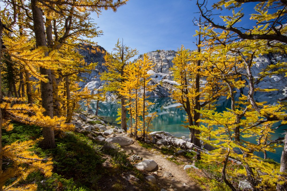 One of the crown jewels of Washington, the Enchantments are well known for their stunning alpine beauty. Although the elevation gain into the Enchantments is substantial, if you’re in search of larches this is the place to go. Adding to the allure are mountain views, pristine lakes, and mountain goats. Practice LNT diligently; alpine ecosystems are delicate and particularly susceptible to damage.