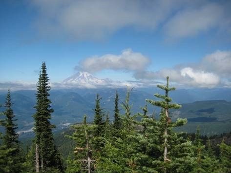 Panoramic view of Mt. Rainier, Cowlitz River Valley, Goat Rocks, and Mt Adams | Photo by Regina Robinson