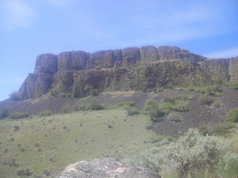 As you proceed up the path, find a safe place to turn around and look out behind you. The views across the scabland are magnificent. Continue heading up the trail - the first notch brings you up to the first set of terraces on Steamboat Rock. This area is definitely worth exploring.