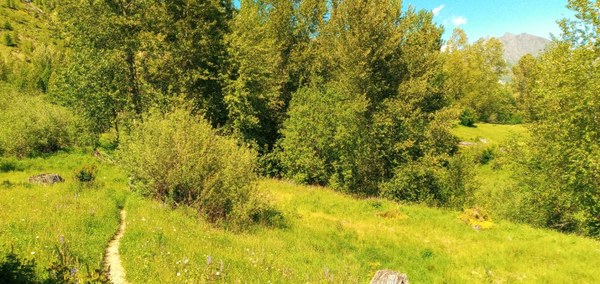 Elk Bench Meadow along Coldwater Lake Trail where Scotch broom has been removed.