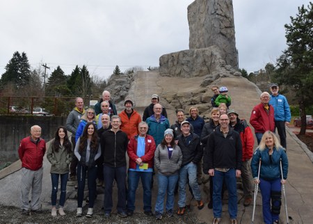 John Wick, member of the Friction Slabs committee and Mountaineers Super Volunteer, made a wonderful presentation about the history of the project. He also recognized and thanked those most involved: Mark Holms, Mary Hsue, John Ohlson, Adam Rhodes, John Rijhoff, John Rollins, Stevie Russell, Dave Shema, Nicole Twadell, Timmy Williams, and Stephanie Willison.