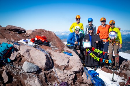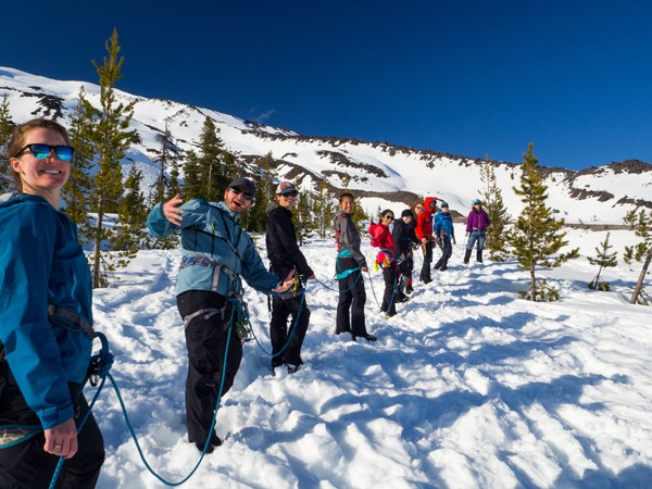 Mountaineers students practice glacier travel on a bluebird day.