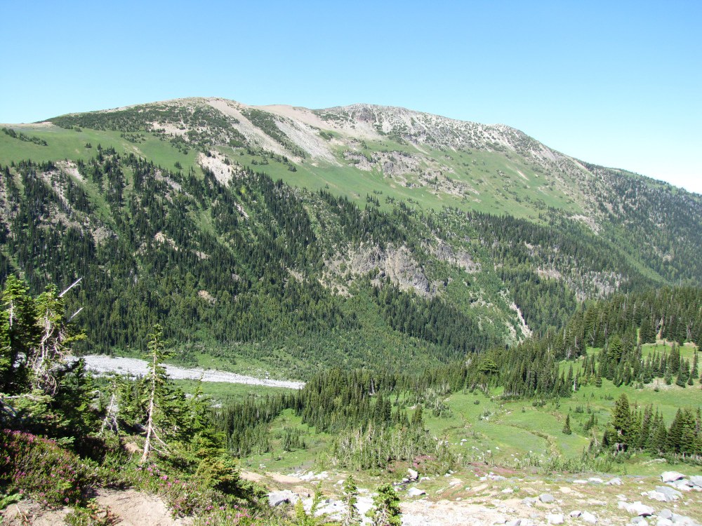 Directions: Travel to Enumclaw and take SR 410 east. Approximately 33 miles from Enumclaw you will reach the park boundary. Continue into the park and in 4.5 miles turn right on the Sunrise Road for another 4.5 miles until you cross the Fryingpan River Bridge. Park just beyond the bridge (elevation 3800’). The Summerland trailhead is on the west side of the road. An entrance fee is required at the park kiosk located on the Sunrise Road.