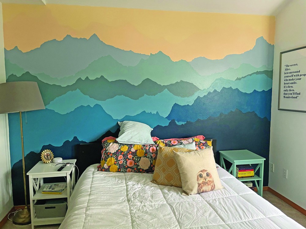 Calm, centered, present, and grateful. Spending time outdoors makes me feel all of these things and more. A few years ago, I was inspired to bring that serenity indoors. Into my bedroom, specifically, via a mountain mural on the wall.