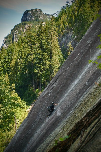 Leo Brownawell climbing at Squamish, BC 2023. Photo by Kevin DeFields.
