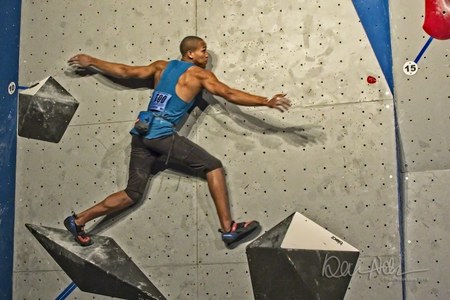 The Olympic competition will combine three climbing disciplines and will offer only overall medals. So all athletes will have to compete in bouldering, completing as many fixed routes on a 5-meter wall within a certain time frame; lead, completing a fixed course within a specific time, and speed, which essentially is a sprint on a fixed, 15-meter route. Speed requires an almost full-time training regimen, while bouldering and lead share power and agility requirements. Lightner is the only American to make the national team on the latter two and his 10 national youth championships are split evenly between bouldering and lead.
