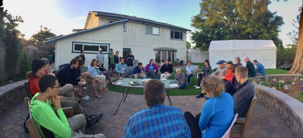 The evening backyard "dinner talk" led by Scout and Frodo.