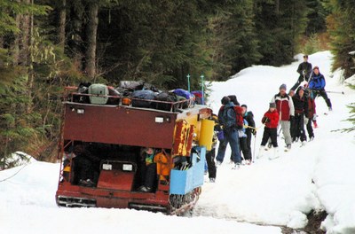 The snow cat takes visitors 2.3 miles to Meany Lodge