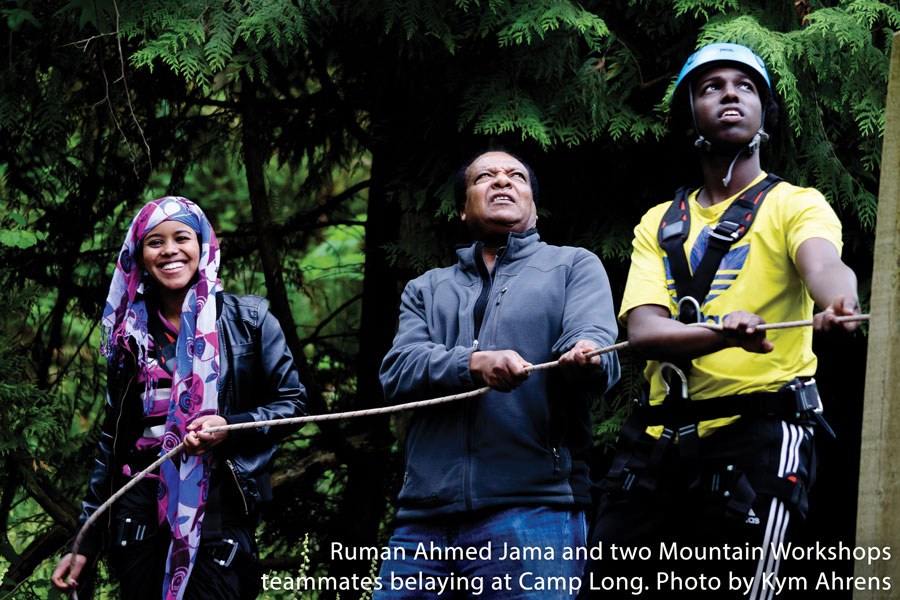 “I didn’t ever think I would do something like this,” says Ruman Ahmed Jama, a small girl with a huge personality (pictured on the cover). She is one of the first to reach the top, helmet covering her hijab and her harness strapped on over a long skirt as she climbed. Once she descended, she admits, “I was a little scared at first, but I was so happy when I got to the top.”