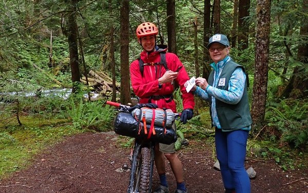 Olympia Branch Conservation & Stewardship Committee trail User Survey Outreach in Olympic national Forest. Photo by Kathy Fox.