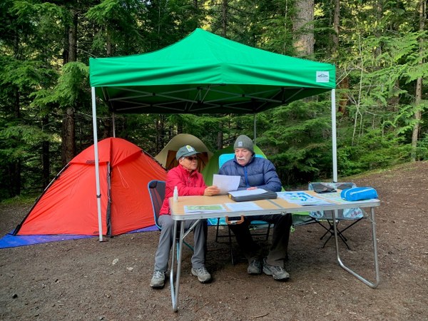 Olympia Mountaineers Zua Stivers, Kathy Weller, and Jim French worked in conjunction with the Northwest Forest Service over Memorial Day weekend as Public Outreach Volunteers to help protect the Quilcene Drainage. Port Townsend and surrounding communities are having issues with water quality, and city officials came together to work with the Northwest Forest Service in order to help make people aware that what they do in the backcountry has a direct impact on the health and wellness of the surrounding communities.